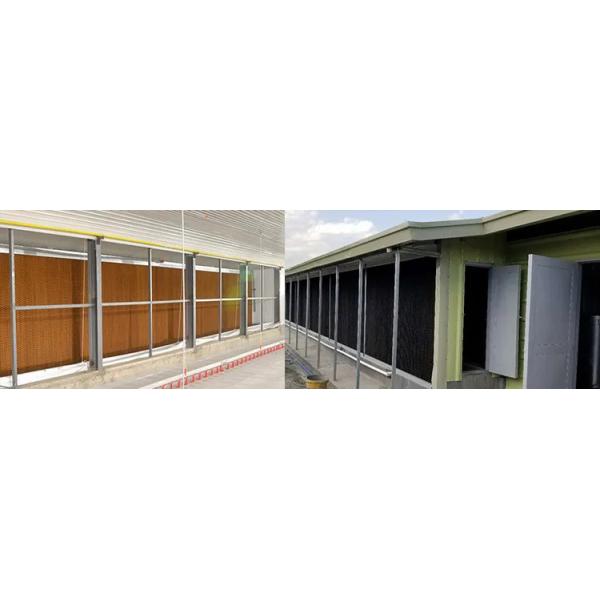 | Cooling pad and fan, the longitudinal ventilation and cooling combination is most economical and effective summer cooling combination of the poultry house.